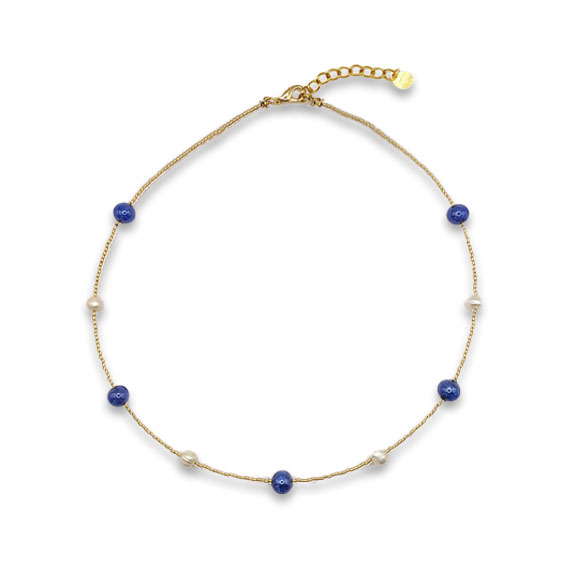 Collana Maty – Perle in vetro di Murano e perle di fiume – Blu