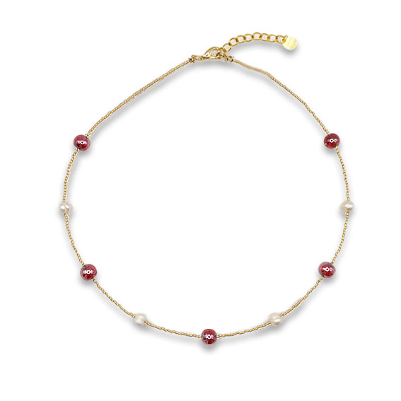 Collana Maty – Perle in vetro di Murano e perle di fiume – Rosso